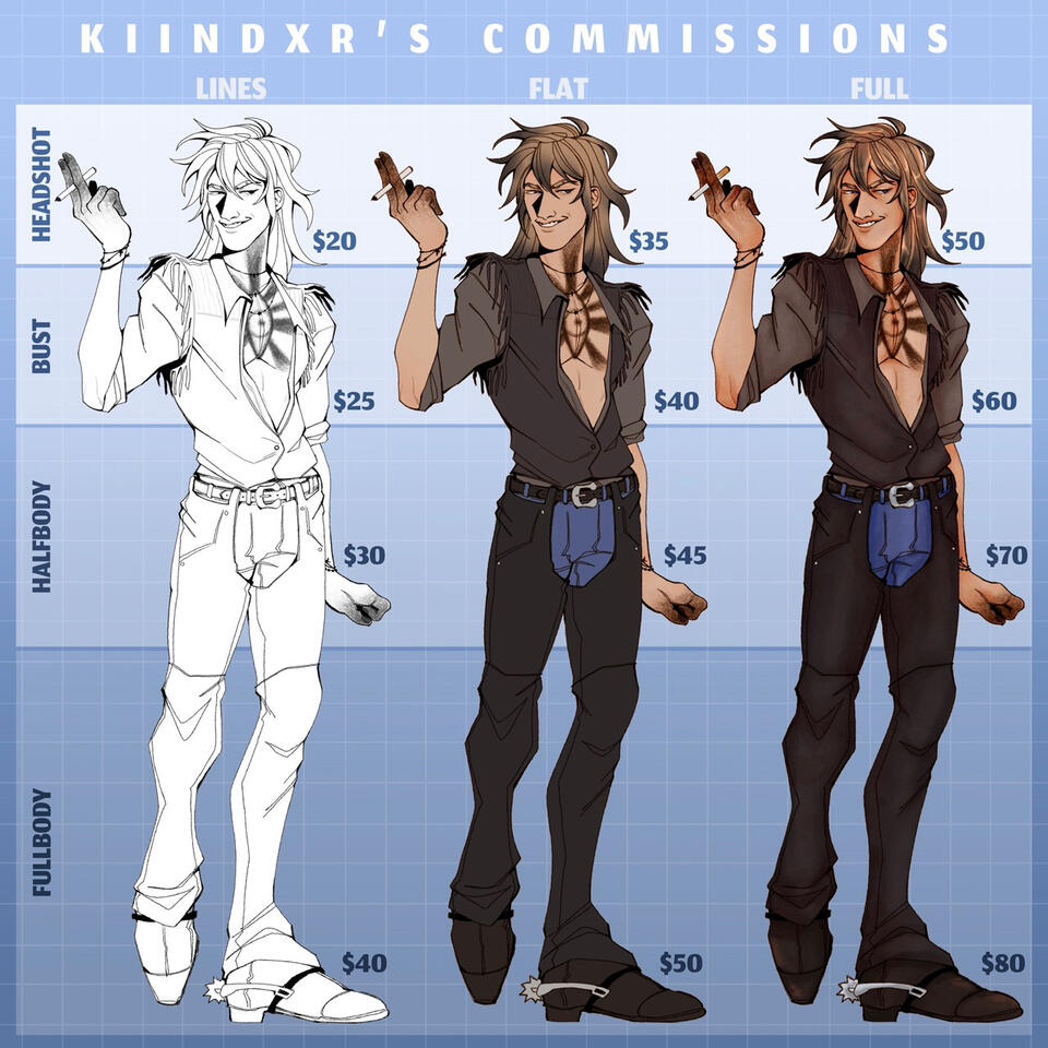 Feel free to reach out to me with any questions!I will draw almost everything (gore, nsfw, etc...) but I have the right to decline any commissions that I feel I am incapable of drawing or am uncomfortable withTHERE IS NO DISCOUNT FOR ADDITIONAL CHARACTERS